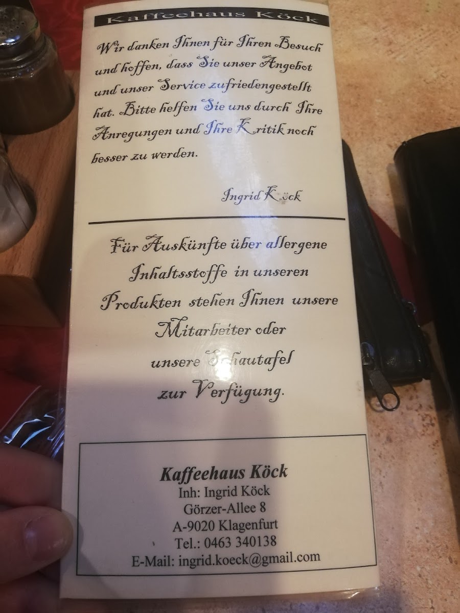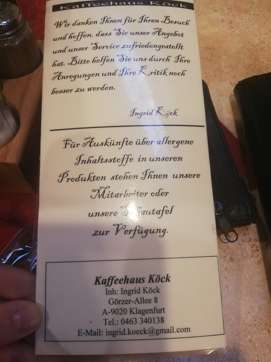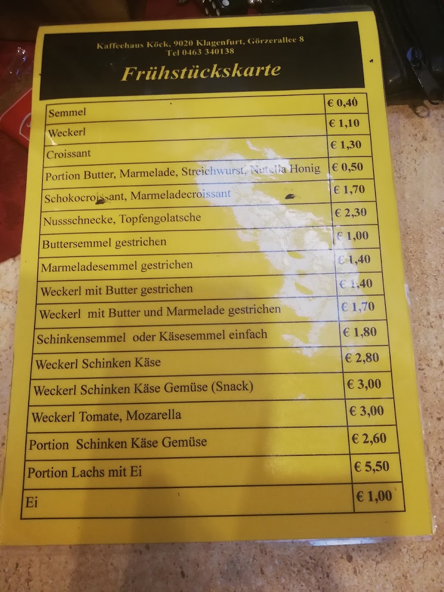 The menu at Dego Bistro primarily features a range of coffeehouse offerings suitable for breakfast, coffee breaks, and light meals. Visitors can expect a selection of coffee drinks, including cappuccino and iced coffee, alongside fresh baked goods such as various Weckerl (bread rolls) and pastries. The menu supports casual dining and quick orders, with options that cater to both snacks and light meals throughout the day.
